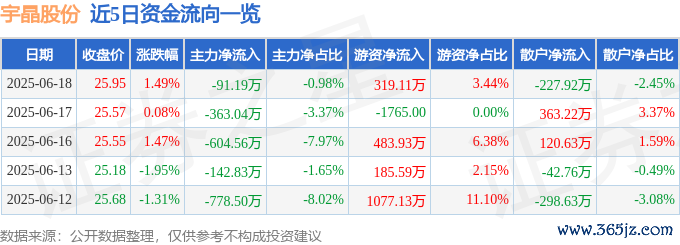 本站消息,截至2025年6月18日收盘博远配资,宇晶股份(002943)报收于25.95元,上涨1.49%,换手率2.74%,成交量3.61万手,成交额9288.18万元。