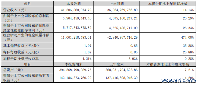 格力电器第一季度实现营业收入415.07亿元,同比增长14.14%;归属于上市公司股东的净利润59.04亿元,同比增长26.29%。